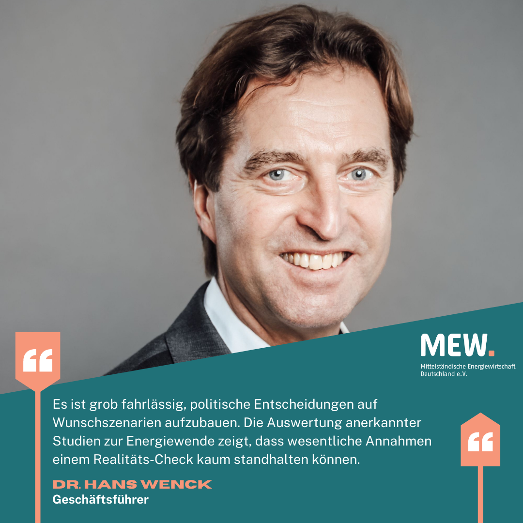 Der Verband der Mittelständischen Energiewirtschaft (MEW) hat auf der Grundlage der Metastudie „Grüner Wasserstoff und Wasserstoffderivate – Kernelemente einer nachhaltigen und sicheren Energieversorgung Deutschlands“ einen Realitäts-Check der aktuellen Energiewendepolitik vorgenommen.